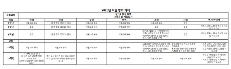 | 2025학년도 겨울방학 안내 가정통신문 & 방학과제